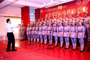 会后,举行了喜庆热烈的“向党致敬,向医院报告”汇报演出。演出由张婧、安乾主持,各党支部、工支会组成7支代表队,用唱响红歌、院歌的方式向党的九十岁生日献礼。神内妇儿代表队用“没有共产党就没有新中国”唱出大家心声;机关代表队一曲“在太行山上”把我们带回激情燃烧的岁月;医技代表队的“祖国慈祥的母亲”深情婉转;内科代表队将“我们走在大路上”演绎的热情豪迈;社区后勤代表队用“歌声与微笑”为共产党、为医院带来深情祝福;外科代表队一曲“革命人永远是年轻”塑造了光荣的党员形象;门诊代表队用“在灿烂阳光下”向党致以最崇高的敬意……全院党员干部职工用激昂的曲调深情回顾90年光辉建党之路,用优美的旋律真诚抒发对党的无限敬仰。诗朗诵“向医院报告”将演出推向高潮,各党支部书记和医生代表、护理人员代表、教学科研代表、基建代表用诗意的语言将各部门工作的亮点、成绩向医院报告,表达了再创百年名院辉煌坚定的信心。全体院领导班子成员齐声高唱院歌《继往开来再创辉煌》,伴随着激昂嘹亮的旋律,全院党员度过了一个难忘的节日。