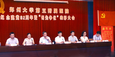 6月28日下午,我院200多名党员在门诊五楼会议室隆重集会,庆祝伟大的中国共产党成立九十二周年,召开纪念建党92周年暨“创先争优”表彰大会。大会表彰了在创先争优活动中涌现出来的校级、院级先进党组织和先进个人,为新加入党组织的12名党员举行了庄严的宣誓仪式,新党员和积极分子代表作了大会发言。院领导班子全体成员出席了大会,会议由院党委副书记兼纪委书记徐翠英同志主持。