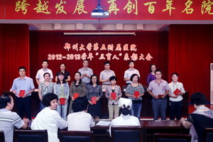 9月9日下午,我院2012-2013学年“三育人”表彰大会在门诊五楼会议室隆重召开。会议由纪委书记徐翠英同志主持,院长王建平同志宣布了表彰决定。董瑞鸿等48位同志荣获了校级“三育人”先进个人荣誉称号;巩冬青等34位同志荣获院级“三育人”先进个人荣誉称号。