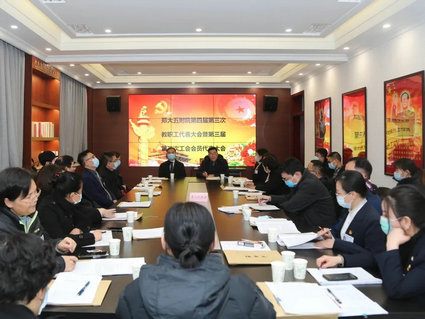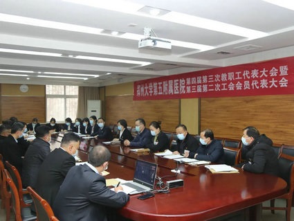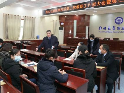 2022年1月28日,郑州大学五附院第四届第三次教职工代表大会暨第三届第二次工会会员代表大会采用线上线下结合的形式举行,设有一个主会场和三个分会场。院领导韩晔、郑鹏远、徐翠英、周文平、王兵、王少亭、傅聿铭、杨怀玉、朱光、汤有才出席会议,大会正式代表、列席代表共143人参加会议。会议由党委副书记、工会主席徐翠英主持。
