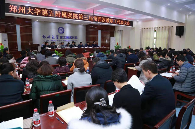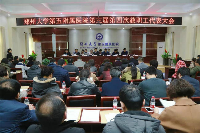 2018年2月1日下午,郑州大学五附院第三届第四次教职工代表大会在门诊五楼会议室胜利召开。会议由院工会主席朱光主持。当天下午在与会代表的共同努力下,大会圆满完成了各项议程,听取审议并通过了4项议题。领导班子成员与教职工代表进行了广泛而深入的讨论,就职工关注的重点工作与热点问题进行了沟通。