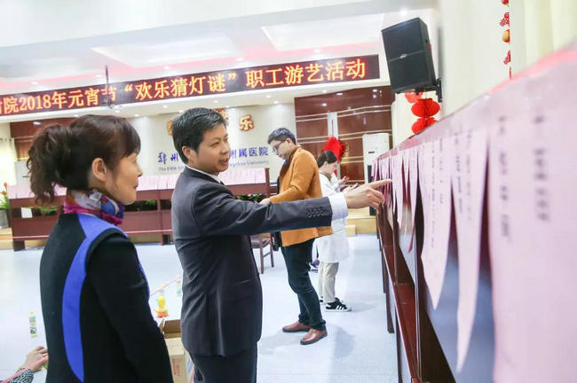 载着新年喜庆的气氛,我们迎来了一年一度的元宵佳节。3月2日下午3点郑州大学五附院工会在门诊五楼会议室举办了元宵节“欢乐猜灯谜”职工游艺活动。院党委书记王新军,院长郑鹏远,工会主席朱光亲临现场。