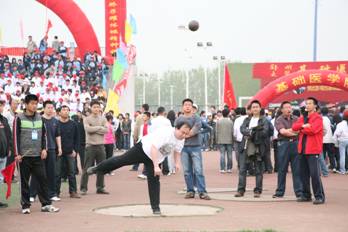 4月8-10日院工会组织职工参加了郑州大学2009年“阳光体育运动”田径运动会,共派出34名运动员参加了三个年龄组的29项比赛,荣获了教工团体总分第四名的好成绩。共获得了男子立定跳远第一名、男乙30米慢骑第二名、男丙足球踢准第二名、男子30米钓鱼跑的第三名、男子跳高第三名和第六名、男丙铅球第四名和第七名、男子4*100米第七名;女丙立定跳远第四名、女子跳远第七名、女子排球发准第七名、女子4*100米第七名。并派出36名女职工参加了运动会开幕式团体操的表演。
