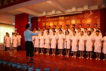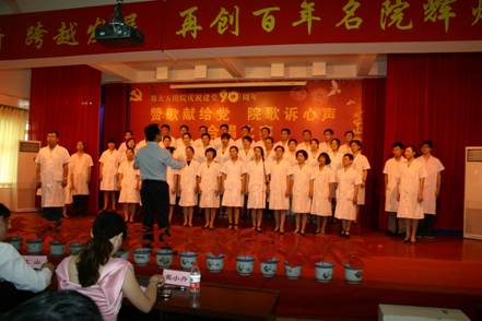6月29日下午,在建党九十周年即将来临之际,院工会举办了题为“赞歌献给党 院歌诉心声”合唱比赛,热情讴歌党的光辉历程,抒发我院广大职工爱党爱国的情怀,以实际行动推动“创先争优”活动的深入开展。