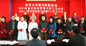 李新华书记宣读了表彰决定,对我院2010年度行风工作先进集体和“十大医德标兵”进行了颁奖。神经内三科主任刘恒方代表行风先进集体、功能科主任杨青、神经外一科主管护师张希琴分别代表医德标兵作了典型发言,他们的发言使与会人员深受感动。随后,院党委副书记、纪委书记徐翠英同志向到会的全院中层干部传达了省卫生系统2011年度纪检监察暨纠风工作会议精神,简要总结了2010年度医院纪检监察及纠风工作,从党风廉政建设工作三项重点任务、四项基本职能等方面,安排部署了2011年度医院纪检监察暨纠风工作主要任务,要求全院广大党员干部认真学习贯彻会议精神,围绕医院改革发展大局,继续加大反腐倡廉体系建设、党风廉政建设和纠风工作力度,落实责任,真抓实干,为医院各项工作顺利开展提供有力保证。