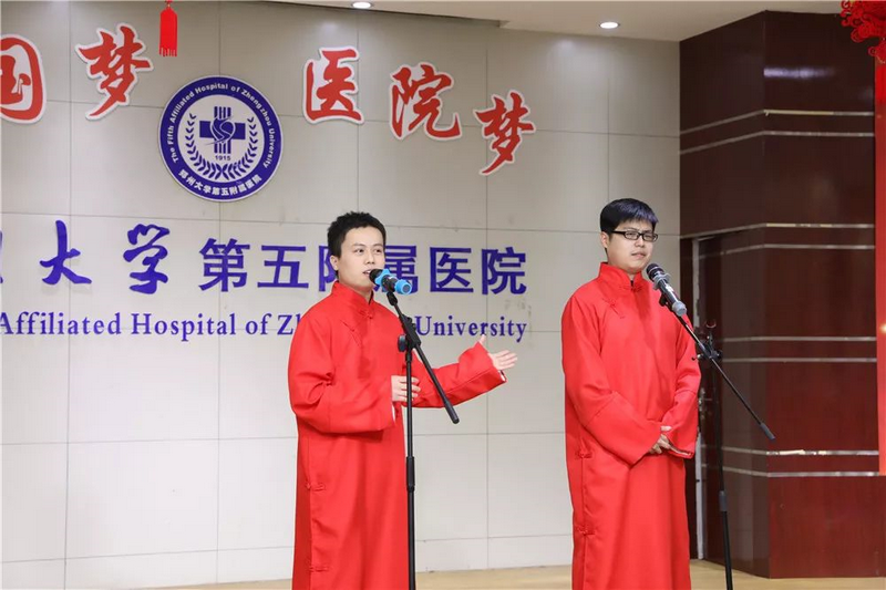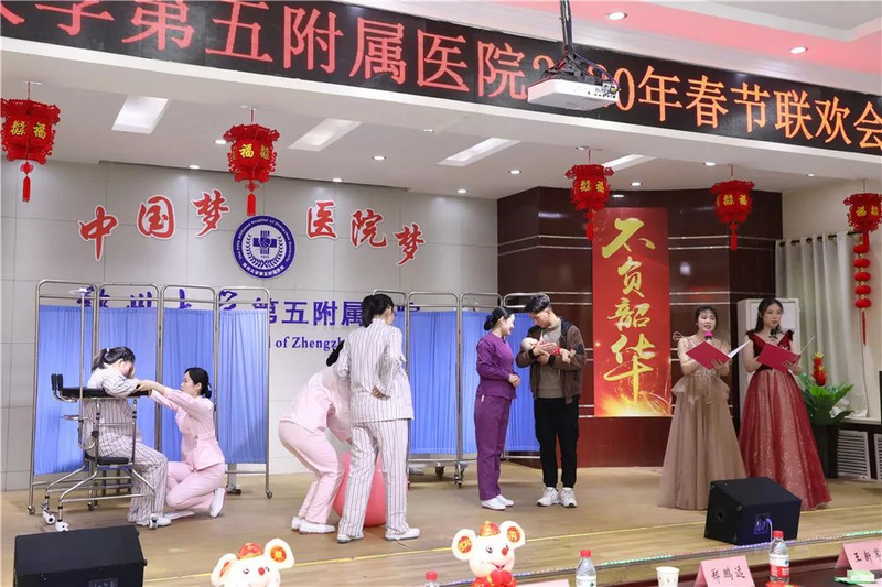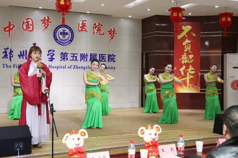 欢歌笑语迎新年,筑梦奋进新时代。2020年1月17日下午,庚子鼠年春节即将到来之际,经过院工会、各分工会积极筹备,全体演职人员辛苦付出,郑州大学五附院“中国梦 医院梦”2020年春节联欢会在门诊五楼会议室成功举办。医院领导和全院300余名教职工代表一起观看演出,喜迎新春佳节。