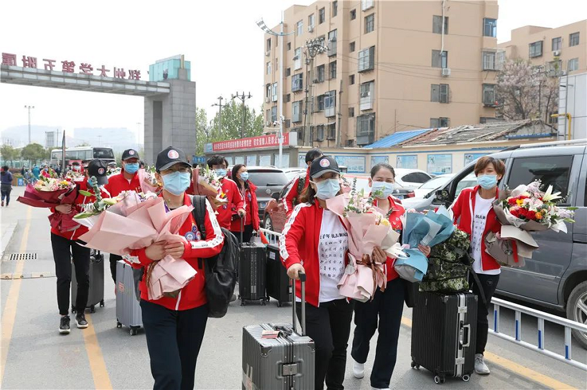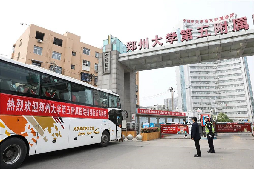 2020年4月9日,郑州大学五附院援鄂医疗队28名队员经过14天的集中医学观察,安全返回医院。