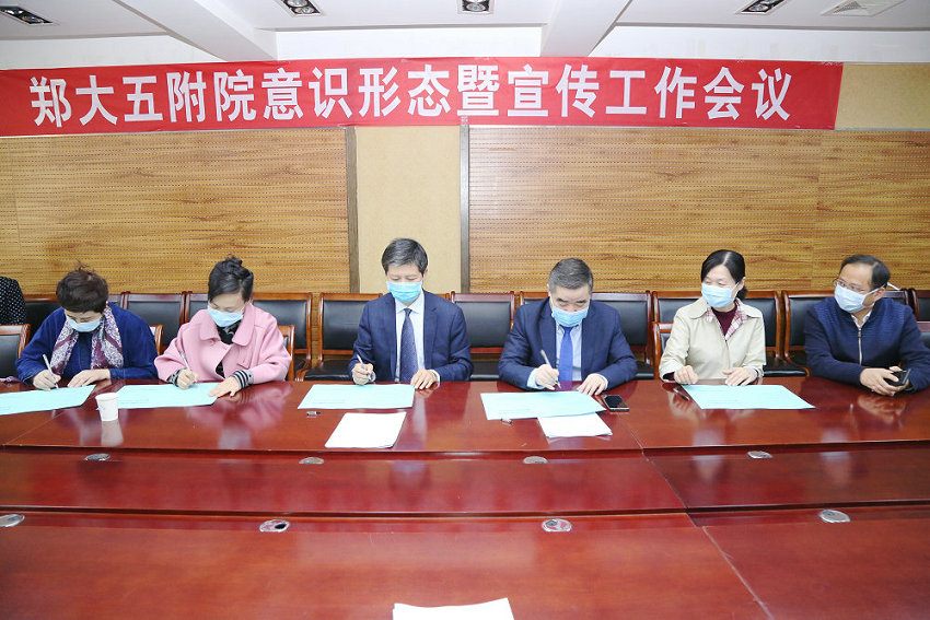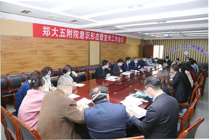 为进一步做好医院意识形态和宣传工作,2020年4月23日下午,郑州大学五附院意识形态暨宣传工作会议在医院行政楼二楼会议室召开。院领导王新军、郑鹏远、徐翠英出席会议。各党总支、党支部书记及相关职能科室负责人参加座谈会,会议由宣传科科长马珂主持。