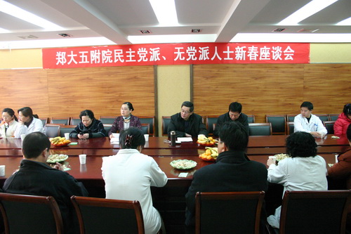 1月7日下午,我院召开2011年民主党派、无党派人士新春座谈会。会议由党委副书记徐翠英主持,党委书记李新华做了重要讲话。工会主席陈琳、副院长乔保忠以及医院所属11个党支部的支部书记、相关职能科室负责人出席了会议,医院在职人员中的民主党派、副高以上的无党派人士30余人参加了会议。座谈会上,与会人员畅所欲言,回顾了医院一年来所取得的成就和民主党派自身的建设,并就新一年医院的建设发展提出了许多中肯的意见和建议。