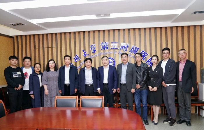 2021年4月29日,许昌市鄢陵县中心医院董事长苏俊生、怡康苑总经理晋雪正、副总经理高艳平、医务科主任裴艳兵、公卫组组长赵冬冬、信息科张栩健一行6人到访郑州大学五附院,就健康养老、医养结合相关工作座谈交流,研讨特殊时期河南医养结合产学研新发展思路与举措。郑州大学五附院院长郑鹏远,副院长杨怀玉、汤有才,相关职能部门负责人以及欣宜嘉健康管理有限公司总经理李浩参加了座谈会。座谈会由副院长汤有才主持。