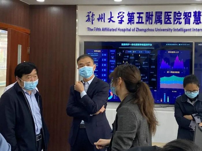 苏俊生董事长一行,在郑州大学五附院副院长杨怀玉的陪同下到访了医院直属福华街社区卫生服务中心。苏俊生董事长表示,如何依托社区走进居家是倍受关注的基层养老问题。