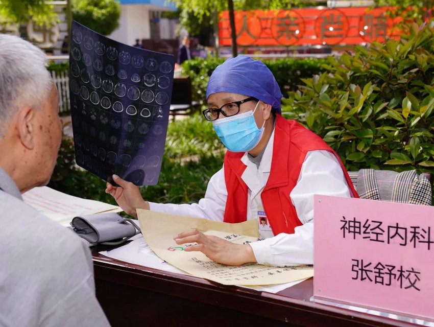 前来咨询的人群中,还有一位101岁的老奶奶,见到一下子有这么多专家来到她经常散步的院子内,激动的讲道:“我出门不方便,孩子们也忙,平时小病小痛的都不愿意麻烦他们。党和国家的政策太好了,感谢郑州大学五附院的义诊专家,为我们解决了实际问题,让我在家院子里都能享受到这么好的诊疗服务!”