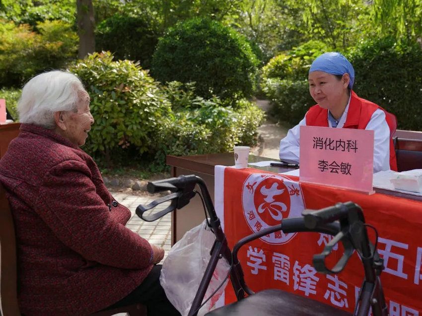 义诊同时,青年志愿者与老人们话家常,聆听老党员讲过去的亲身经历后说道,“正是在老一辈革命家不畏艰险、奋勇拼搏的‘红色精神’熏陶下,无数的医务工作者在国家危急时刻,在新冠疫情严重时刻直面病毒,逆行而上,我们青年人要始终保持和发扬好光荣的革命传统,不忘初心,勇担使命。”