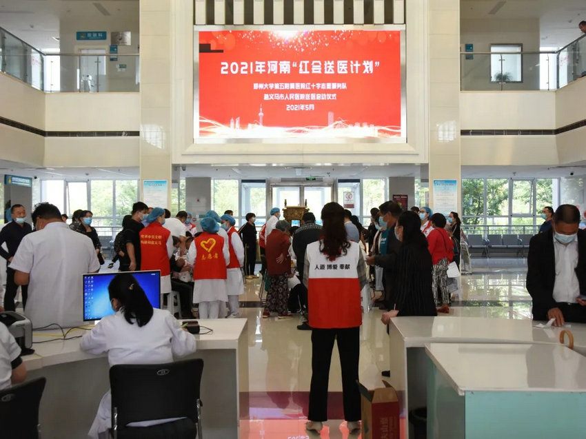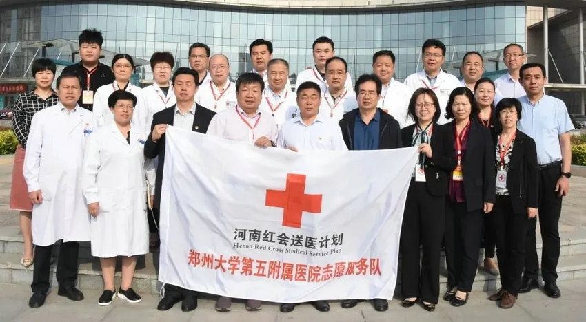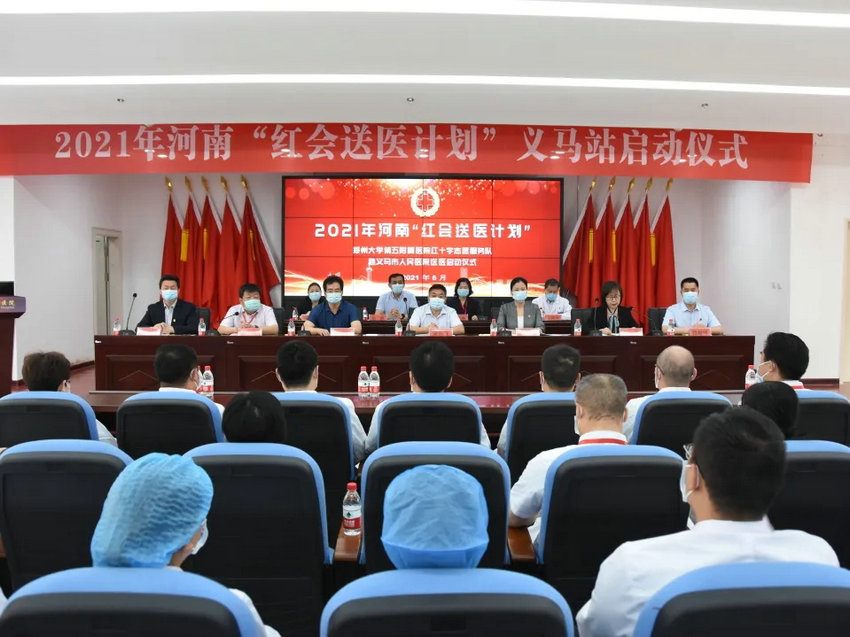 在庆祝中国共产党建党百年之际,郑州大学五附院按照河南省红十字会安排,2021年5月11日上午,医院副院长朱光带领由9名临床科室专家及医疗协作办公室等职能科室负责人组成的志愿服务队,赴义马市参加河南省“红会送医计划”实施项目启动仪式,在当地深入开展“送知识、送技术、送服务”活动。