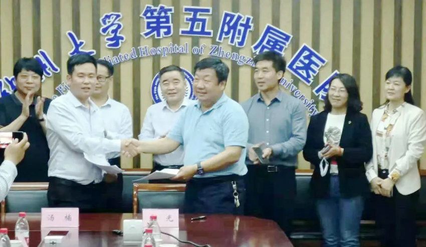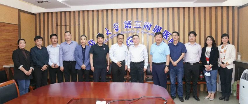 2021年5月14日,正阳县副县长刘业鹏带领正阳县卫健委副主任张勇、正阳县招商局局长陈波、正阳县卫健委健康股股长孙露、正阳县医保局副局长王卫星、正阳县民政局养老服务股股长韩攀、正阳众家馨医院有限公司董事长汤楠一行七人到郑州大学第五附属医院(原郑州铁路局中心医院,始建于1915年)走访交流并签订合作协议。郑州大学五附院院长郑鹏远、副院长朱光热情接待来宾,相关职能部门负责人参加座谈会。