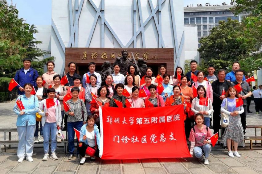 为庆祝建党100周年,更好地开展党史学习教育活动,丰富教育活动学习方式, 2021年5月9日,郑州大学五附院门诊社区党总支书记刘蔚娅书记及所辖两个党支部的37名党员、积极分子和发展对象赴兰考实景感受焦裕禄纪念园、焦裕禄同志纪念馆、焦桐广场、黄河东坝头等焦裕禄精神体验基地,重走习近平总书记来河南兰考调研之路,近距离深切学习和理解焦裕禄精神。