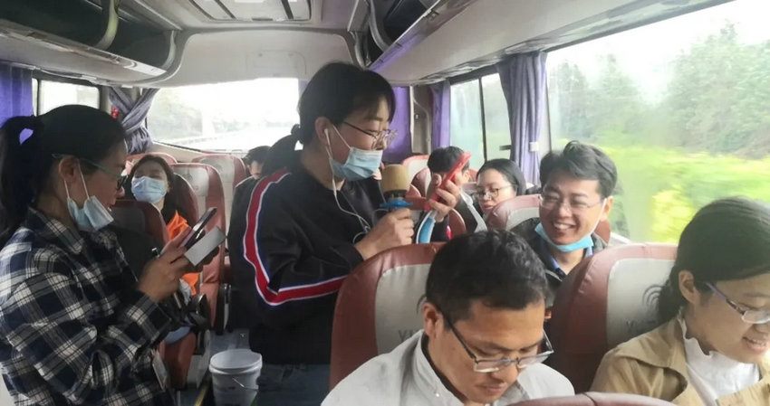 在大巴车上,内科二党总支书记宋玉侠为党员们讲解了主题党日活动的意义,党办主任吴彦勇围绕“中共一大”给大家重温了党史知识。在热烈的氛围中,支部党员进行了党史学习和知识竞赛。