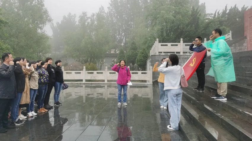 到达目的地后,全体党员在愚公移山广场对着鲜红的党旗重温入党誓词,坚定为共产主义奋斗终身的信念。最让党员们难忘的就是一步一步踏着台阶登上山顶,如同老一辈革命者为革命胜利踏过的千难万险。踏上红色之旅,仿佛重新回到了壮怀激烈的峥嵘岁月。内科二党总支第三党支部书记李哲表示,要将愚公移山精神学懂、弄通、悟透,在工作和生活中时时刻刻铭记自己是一名共产党员,以党员的身份严格要求自己,践行愚公移山精神,忠于医疗事业。