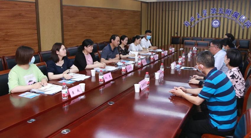 2021年5月28日下午,钟祥市人民医院、武汉大学人民医院钟祥医院党委委员冯正勇、儿科主任李海燕、武丽华等一行6人来郑州大学五附院学习交流儿童康复科室建设、门诊开展工作经验。郑州大学五附院副院长、郑州大学康复医院院长汤有才热情接待来宾,相关职能部门负责人参加座谈会。