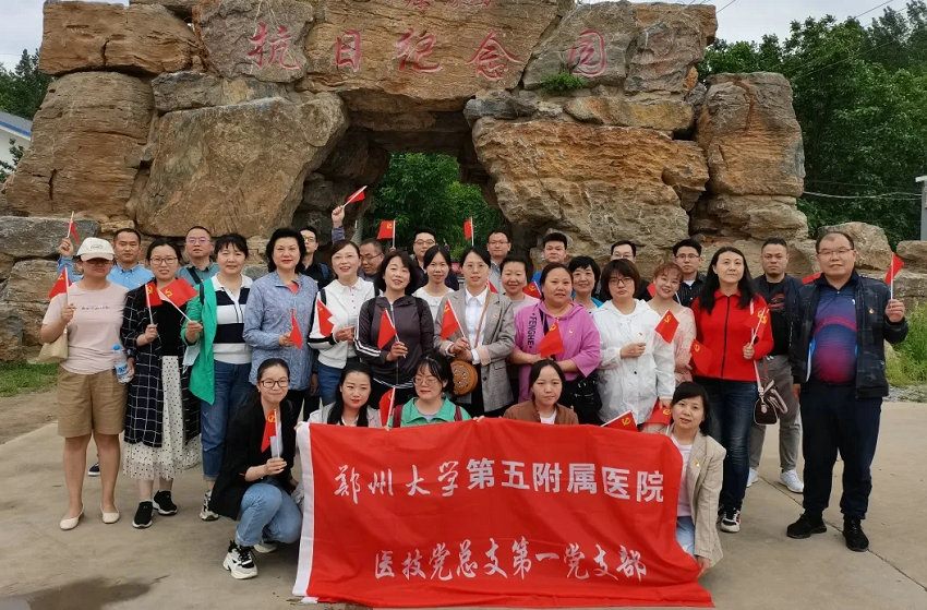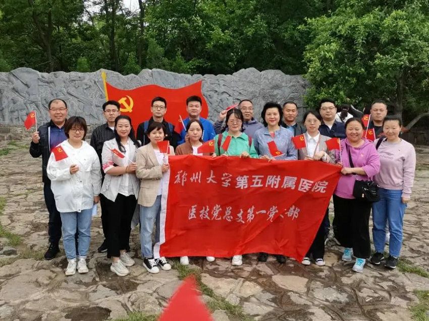 为庆祝中国共产党建党100周年,提高党员干部的党性修养,增强凝聚力和战斗力,2021年5月23日,中共郑州大学第五附属医院医技总支第一支部委员会参观豫西抗日纪念园,积极开展了“传承红色基因 坚定理想信念”主题党日活动。