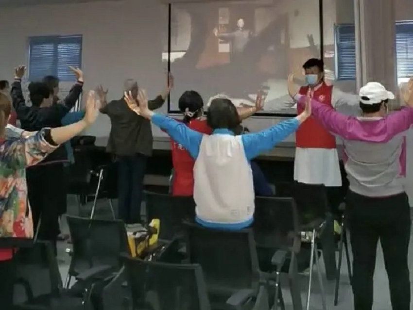 义诊现场,梁廷营副主任为了同时满足以上老年居民的康复要求,带领大家练习“八段锦”,并对动作要领进行细致讲解。