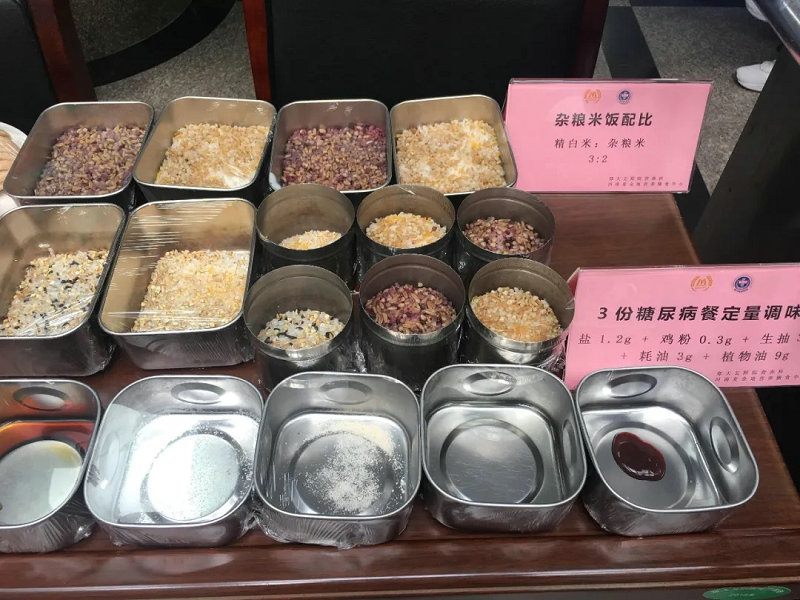 5月17日至21日,临床营养科与职工餐厅协作,现场展示了糖尿病治疗膳食、职工健康活力餐、职工减脂达人餐、职工营养轻食餐等,通过“实物展示+杂粮馒头试吃活动+实物讲解”的方式来更直观的呈现家庭自制营养健康饮食。