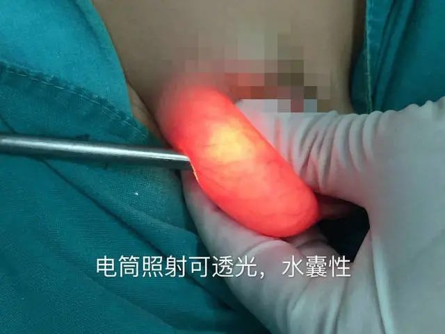 透光实验为阳性,即拿手电筒由阴囊肿物下方向上照射,光线可以通过肿大的阴囊。