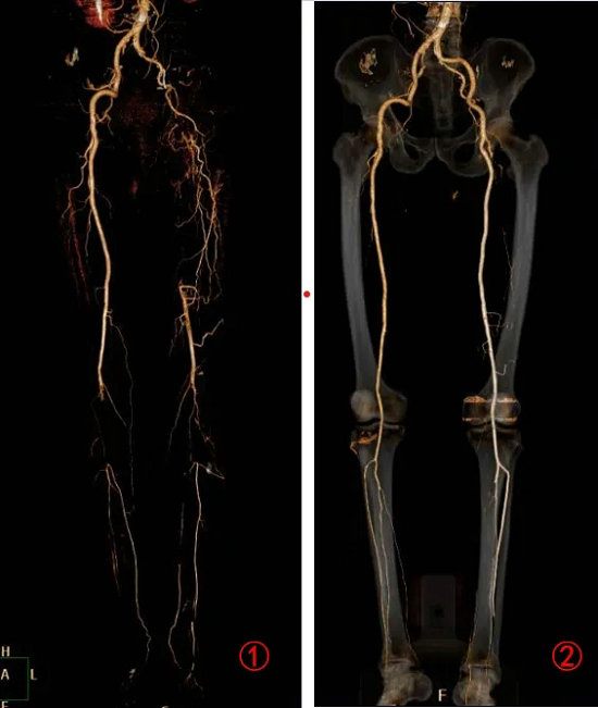65岁的刘阿姨,突然出现双腿的疼痛、麻木、发凉,双足变得发绀、苍白,当地医院说这种病在当地看不好。情况紧急,家属带着患者赶紧来到郑州大学五附院血管外科就诊。医生紧急安排了下肢CTA检查(图1),诊断刘阿姨得的是“下肢急性动脉栓塞”,于是紧急收住院安排急诊手术。
