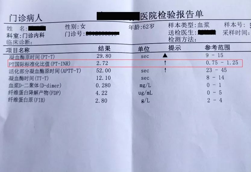 所以,应用该药一定要在专业医生的指导下进行,剂量调整稳定后,定期监测凝血功能,使国际标准化比值(INR)控制在2-3之间(图3),前期药物调整过程中复查凝血频率不超过一周,待指标稳定后一般建议每月复查。另外,生活饮食上注意少食绿叶蔬菜、动物肝脏、黄豆、茶叶等,它们可能会降低“华法林”的效力,大蒜、生姜等可能增加“华法林”效率的食物也注意少食。日常生活中应注意有无牙龈出血、皮下出血、瘀斑等,注意大小便颜色,一旦出现类似出血症状,应立即就诊。