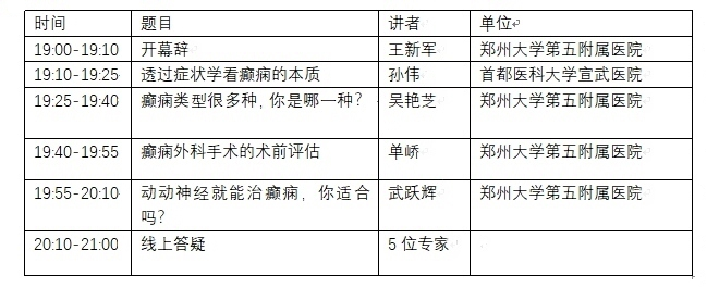 ▲ 2021年6月28日大河健康网线上直播癫痫科普讲座日程