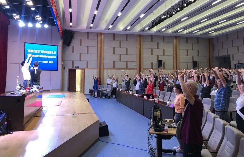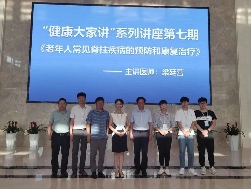 梁廷营副主任为大家带来题为《老年人常见脊柱疾病的预防和康复治疗》专题讲座,分别从骨质疏松、颈椎病、腰椎间盘突出三种老年人易患疾病进行了深入浅出的讲解。针对老年人随着年龄增长骨骼硬度降低、身体机能减退的现象,梁廷营副主任也科普了如何正确摄入钙和维生素D、骨质疏松的防治建议、治疗颈椎病小妙招以及腰椎间盘突出患者的日常活动注意事项。讲座结束时,梁廷营副主任带领大家一起练习“路式八段锦”,获得了现场老干部学员的一致好评。统计结果显示,当天现场有100余人参加本次线下活动,13万人进行了线上观看并积极互动,本次讲座暨义诊活动取得了良好效果。