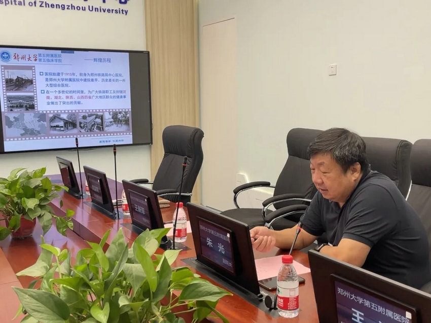 朱光副院长以PPT形式详细介绍了郑州大学五附院的发展历程、近年来取得的成果以及医院优势学科和特色专业。他表示,希望以此次座谈交流为契机,与淮滨县人民医院建立更加紧密的合作,相互学习,共同发展。