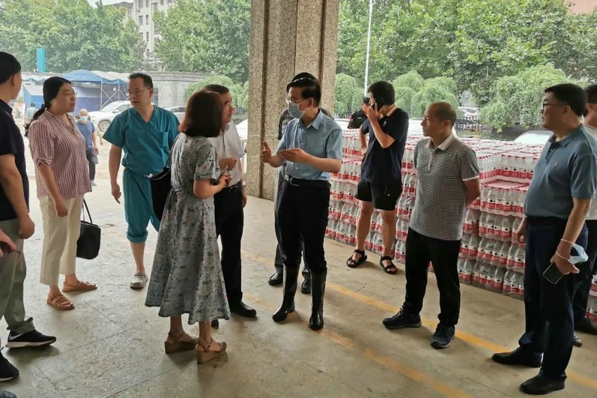 近日,河南省遭遇极端强降雨,郑州等城市发生严重内涝。2021年7月23日上午,郑州大学纪委书记、监察专员许东升,郑州大学副校长、医学院院长董子钢分别来到郑州大学五附院查看灾情以及医院防汛救灾工作,与正在院内组织救灾的院领导王新军、郑鹏远、徐翠英、周文平、傅聿铭、朱光、汤有才以及相关部门负责人交谈并提出要求。