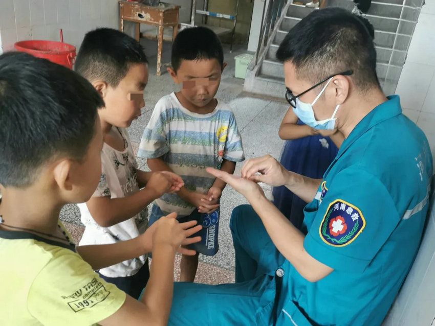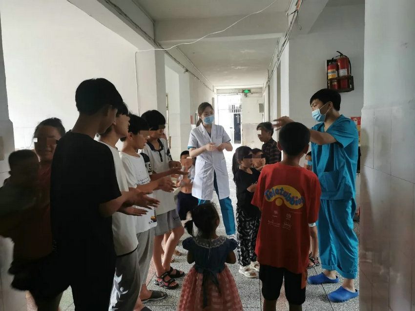 在医疗队所负责的群众安置点中,大量人员在灾害后聚集,且老年人和儿童占绝大多数,这使得细菌、病毒容易传播,医疗队在做好日常诊疗同时,坚持对安置点群众进行健康宣教。医疗队员耐心讲解健康科普知识,并且手把手教会大家“七步洗手法”、“海姆立克急救法”等健康常识。