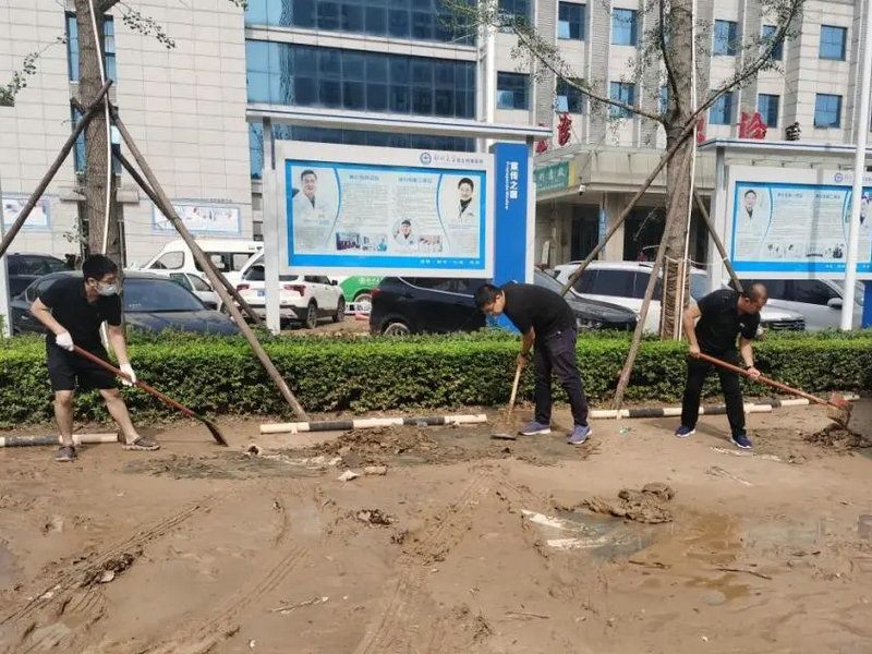 7月22日,院内积水逐渐退去,信息与远程医疗科积极响应党支部号召,在保证业务的前提下,调派人手加入到院内清淤工作。轮班驻守机房,保障安全巡查、积水清扫,并积极参与医院抗洪抢险志愿者工作。