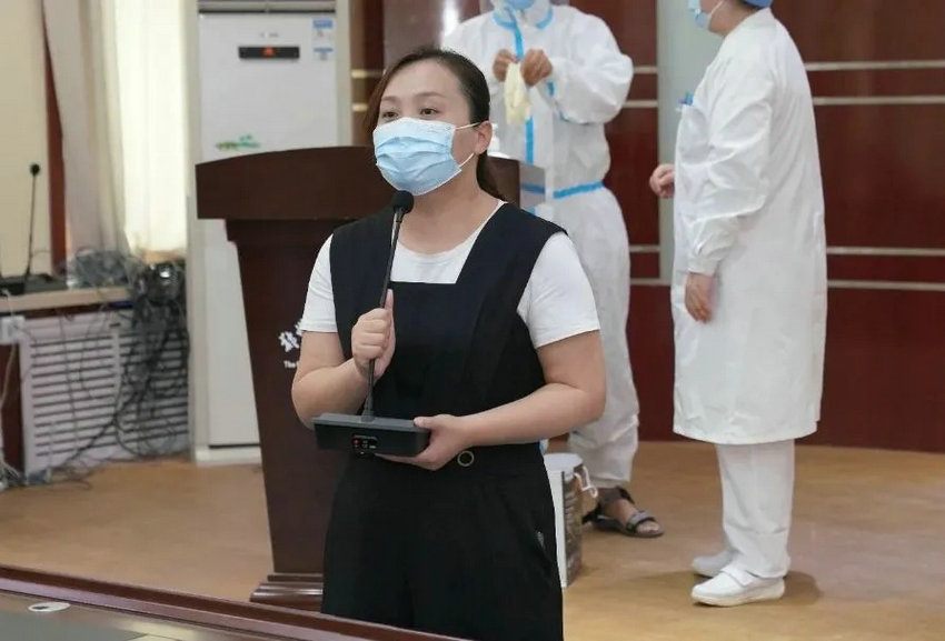 ▲ 院长助理、医务科科长王琰对核酸检测采集工作提出要求,叮嘱大家做好自身防护