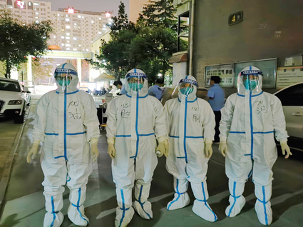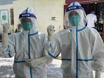 大家每天头顶烈日,天天徒步爬楼,每次完成任务归来时,都是疲惫不堪,防护服里衣襟湿透,但是大家每次都拼尽全力保质保量按时完成任务,从不抱怨。
