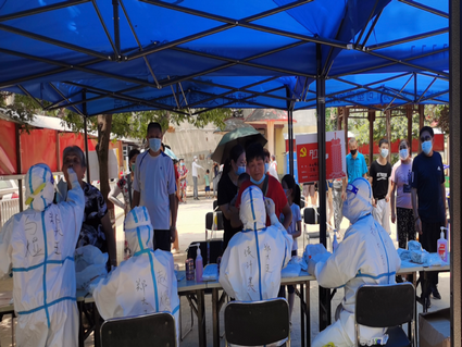 全民核酸的采集现场,“天使白”和“志愿红”并肩作战,共同抗疫,全员核酸采样工作有序推进,疫情不止,脚步不停,固守在一线,坚信“郑州必无恙”。