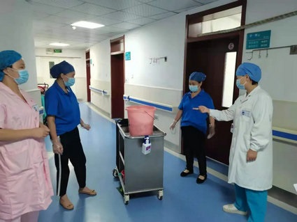 六、各病区加强门户管理,安排护理人员24小时值守、管理和登记。各科室督导病区内所有人员规范佩戴口罩,认真核查陪护核酸检测,确保人员不聚集、不扎堆、不串楼,错峰购餐,同时做好沟通解释工作;