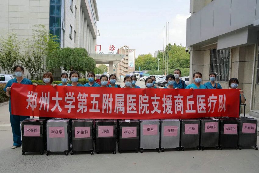 自2021年8月15日至今,在郑州大学五附院党委书记王新军、副院长傅聿铭带领下,由医疗、护理、控感及综合管理团队共25名队员组成的支援商丘医疗队,已连续奋战12天,全心全意为患者健康保驾护航。