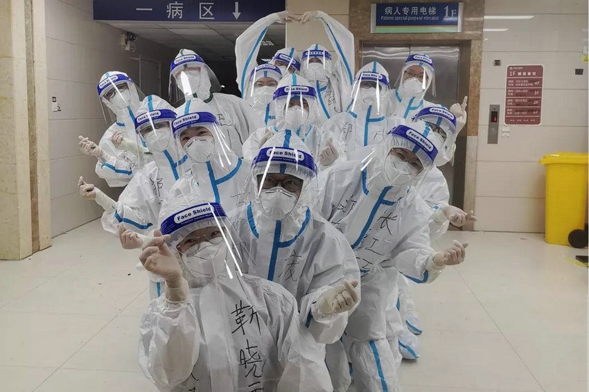 这样的场景是郑州大学五附院支援商丘医疗队每天日常工作,他们安抚患者,与家属沟通,梳理病区,病历讨论,和平日里的工作无异。但穿上防护服,作为共产党员的他们便化身逆行的“白衣战士”,不惧危险,冲锋在前,让党徽在隔离病区中绽放光芒!