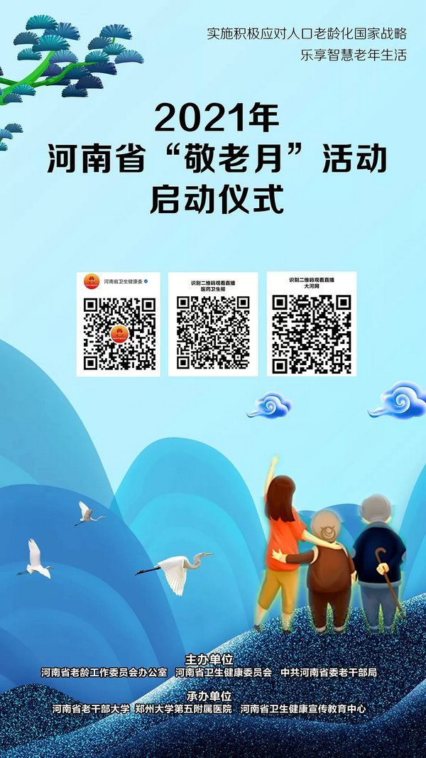 在全国第12个“敬老月”来临之际,9月27日,2021年河南省“敬老月”活动启动仪式在河南省老干部大学举行。第三届全国“敬老文明号”、全国“敬老爱老助老模范人物”、河南省“敬老文明号”、河南省“敬老爱老助老模范人物”等将获表彰。