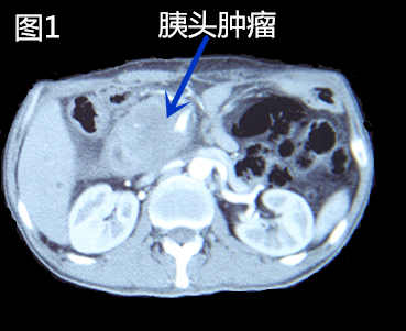 患者鲍先生,现年50岁,既往因“胰腺恶性肿瘤、重度黄疸”于肝胆胰腺外科行“开腹胰腺肿瘤射频消融、胃肠吻合、胆肠吻合术”。术后黄疸消褪,基本情况明显改善,半年后再次复查CT,提示胰头肿瘤较前增大(图1),这个消息使鲍某及其家人陷入了更深的绝望——上次手术可能已经是最后一次机会了,这次的复发比上次情况更加凶险。当李晓勇教授告知其可以考虑一种全新的纳米刀手术治疗胰腺癌时,鲍某的心中再度燃起生的希望。