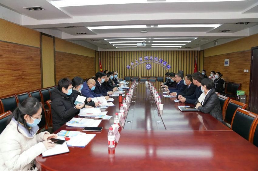 2021年12月18日,河北省邯郸市卫健委二级调研员李富财、健康老龄处处长郝军霞,邯郸市第一医院院长信栓力,新疆乐龄居家养老服务中心董事长严志强等一行13人到访郑州大学五附院,就医养结合、健康养老、智慧医养结合服务质量控制平台建设等相关工作进行参观学习与交流。郑州大学五附院院长郑鹏远、纪委书记周文平热情接待来宾,相关职能部门负责人参加座谈交流。