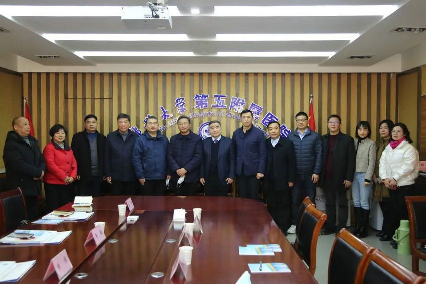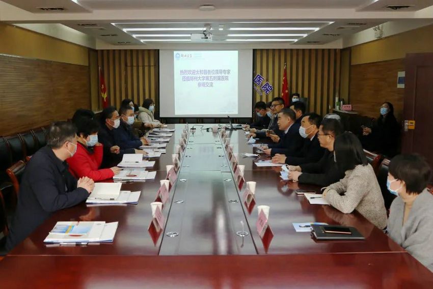 2022年2月23日,安徽省太和县民政局副局长范祥东、城关镇党委委员武云、太和县中医院纪委书记潘欣、北关区社区办事处书记哈继梅等一行到访郑州大学第五附属医院(原郑州铁路局中心医院,始建于1915年)参观学习。郑州大学五附院院长郑鹏远、纪委书记周文平热情接待来宾,相关职能部门负责人参加座谈会。