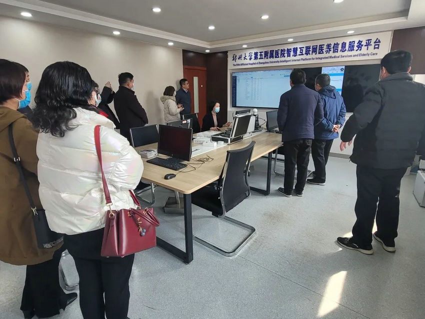 座谈会结束后,来宾走访了郑州大学五附院直属福华街社区卫生服务中心·福华颐养院及医养结合(居家养老)服务站。社区管理科科长程智、护士长宋利英、智慧医养结合居家服务站站长赵晓婷就相关工作进行了详细介绍,来宾对开展的机构、社区、居家医养结合服务工作以及智慧信息平台的融合应用给予高度评价。