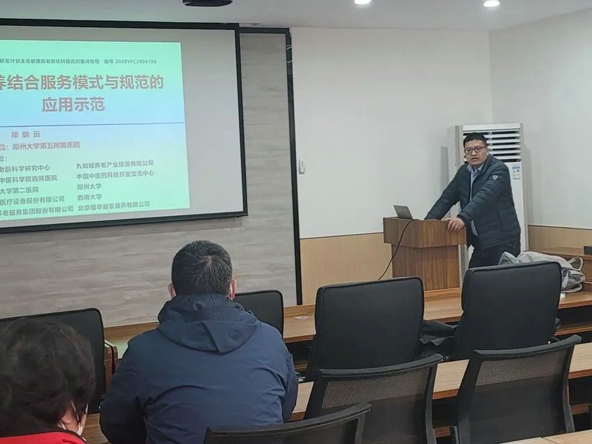 实地走访后,在福华街社区卫生服务中心会议室,由郑州大学五附院牵头的国家重点研发计划——主动健康与老龄化科技应对重点专项“医养结合服务模式与规范的应用示范”项目管理中心执行主任李立国博士向来宾介绍了项目目标、研究内容、技术路线、取得的成果及推广应用等情况;项目组成员、北京福华康养有限公司总经理李聪川介绍了智慧医养结合模式信息平台的技术支撑及研发应用情况。参会人员就相关问题进行深入交流。