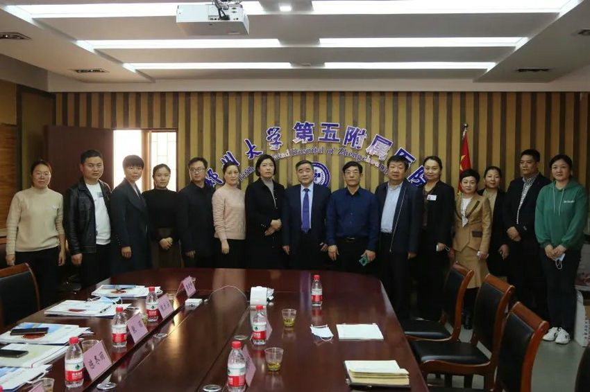 2022年3月11日,邓州市人民医院党委书记华远铎、院长齐蕾,副院长宁洁、杨升,护理部主任陈冬丽、信息科主任党海林、外联部主任张丽、质控科负责人曾丽敏、医务部张太安、刘楠、李晓峰、乾国志、病案室郭宏敏、老年病中心高海云一行14人到访郑州大学第五附属医院(原郑州铁路局中心医院,始建于1915年),就医养结合、智慧医疗与智慧医养结合服务质控平台管理等工作进行参观交流。郑州大学五附院院长郑鹏远教授、副院长朱光教授热情接待来宾,相关职能部门负责人参加座谈交流。