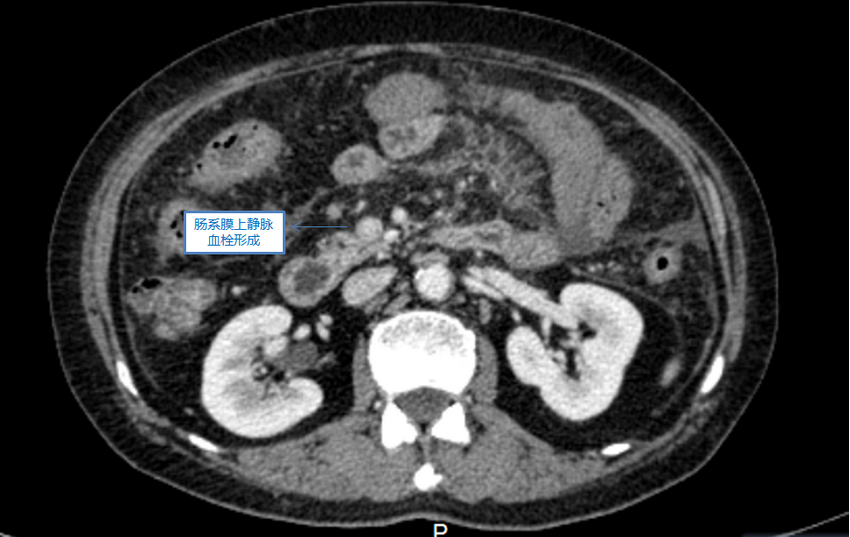 ▲ 腹部增强CT提示肠系膜上静脉血栓形成