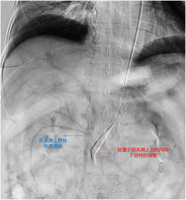 ▲ 经过溶栓后肠系膜上静脉恢复通畅